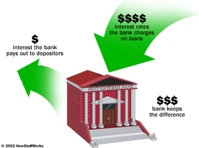 Banks make money off of the interest and fees they charge their customers.